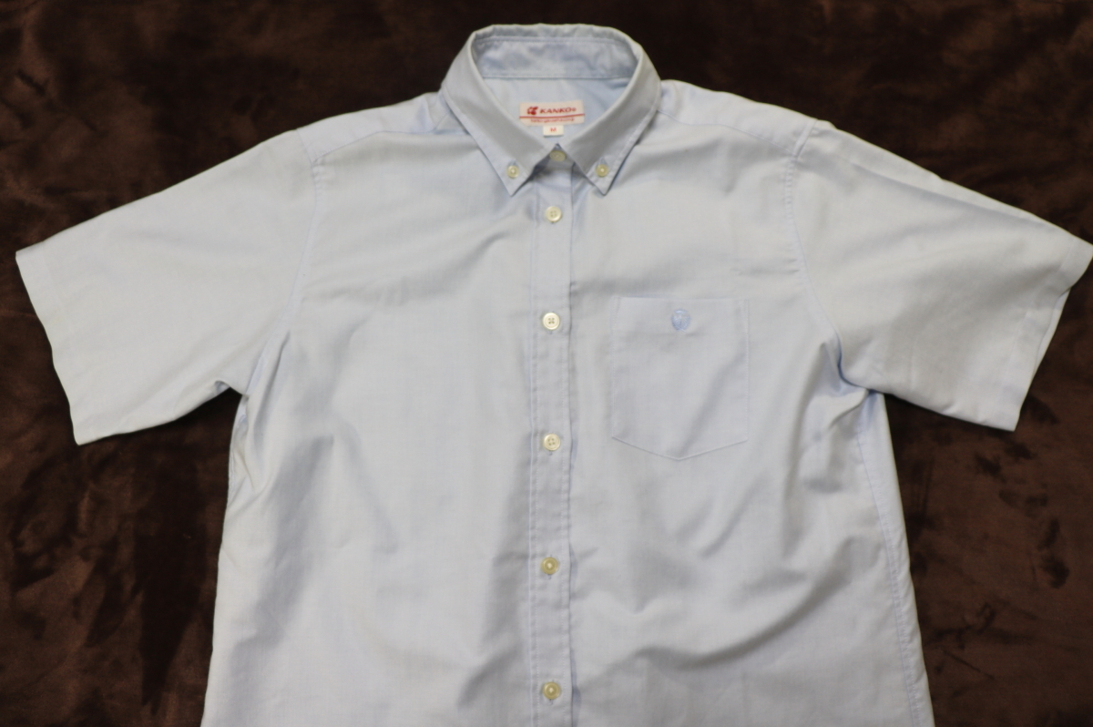 神奈川県大和市■聖セシリア女子高等学校 指定半袖ブラウス水色校章刺繍入りMサイズ良品